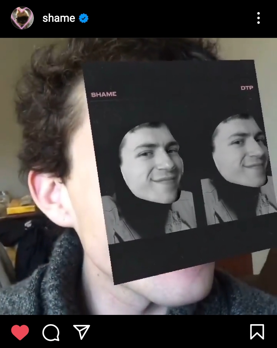 Posters, social content and face filter for Shame. Part of an ongoing collaboration with the band.